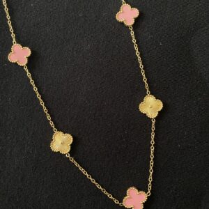 Girly, baby pink clover necklace.