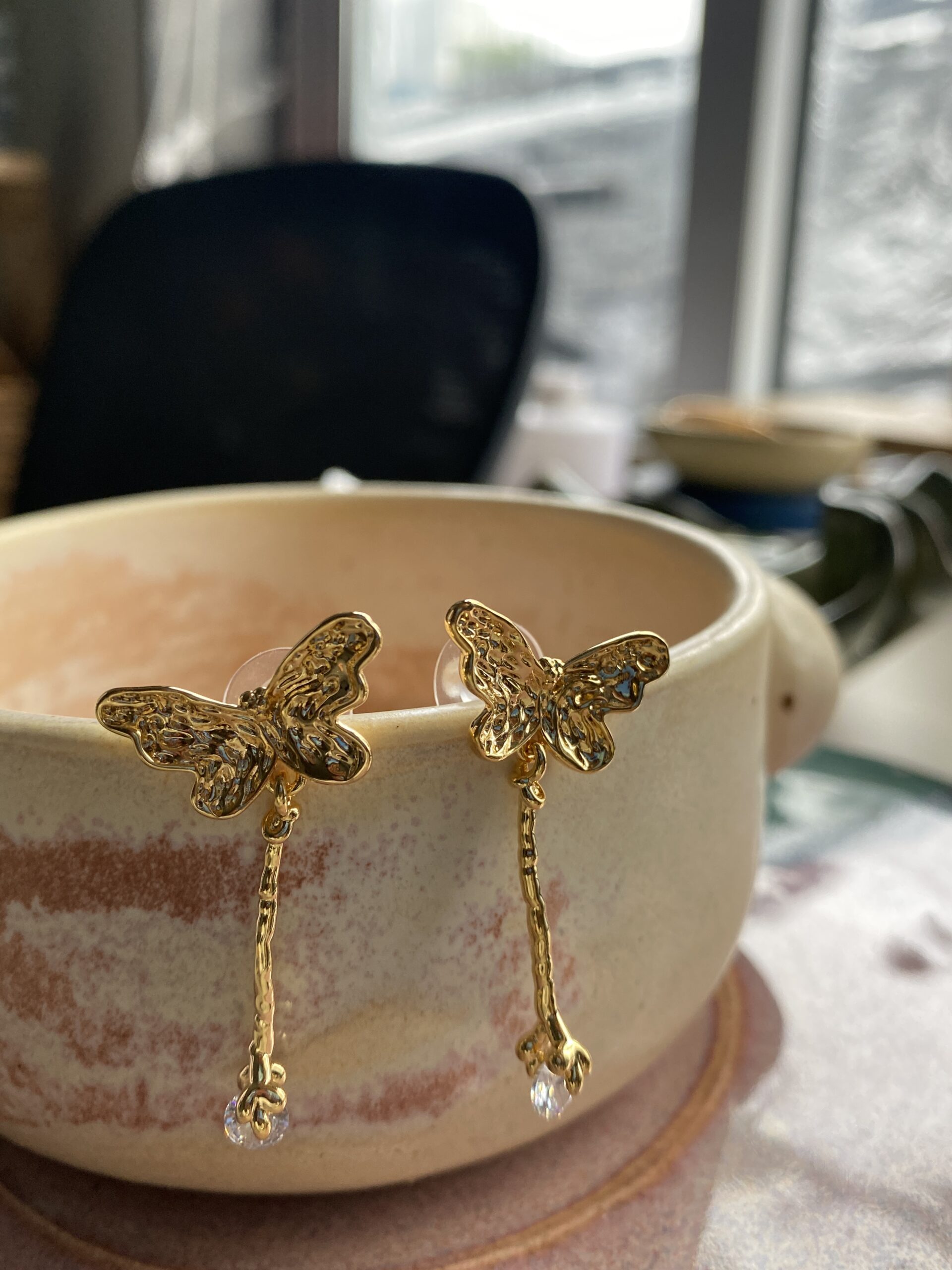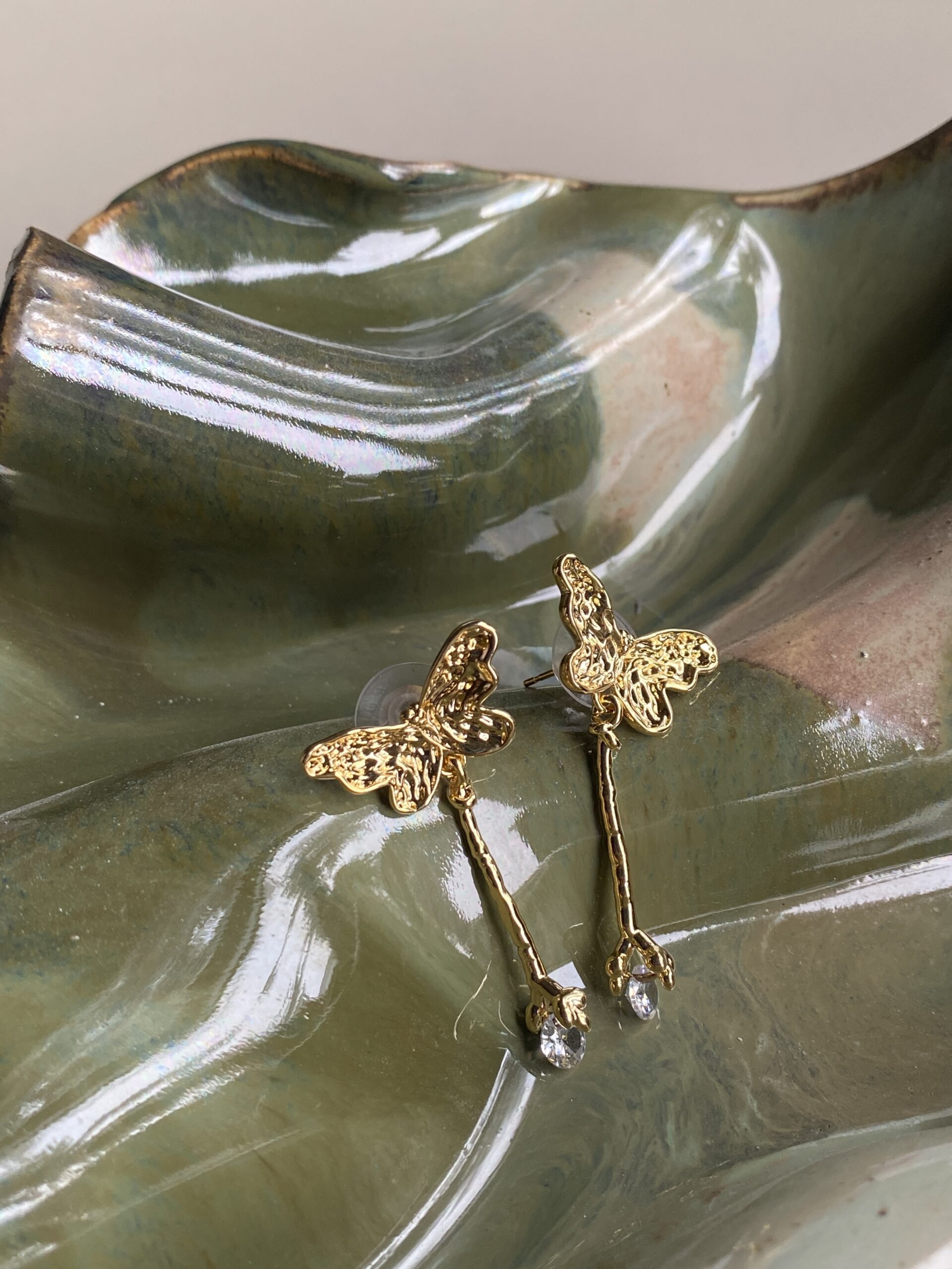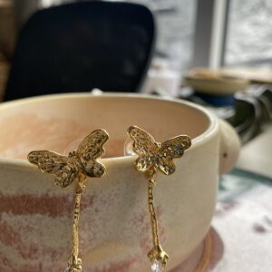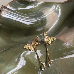 Golden butterflies with a cheeky twist—dangling claws holding sparkling crystals. Fun, bold, and ready to flutter with you anywhere.